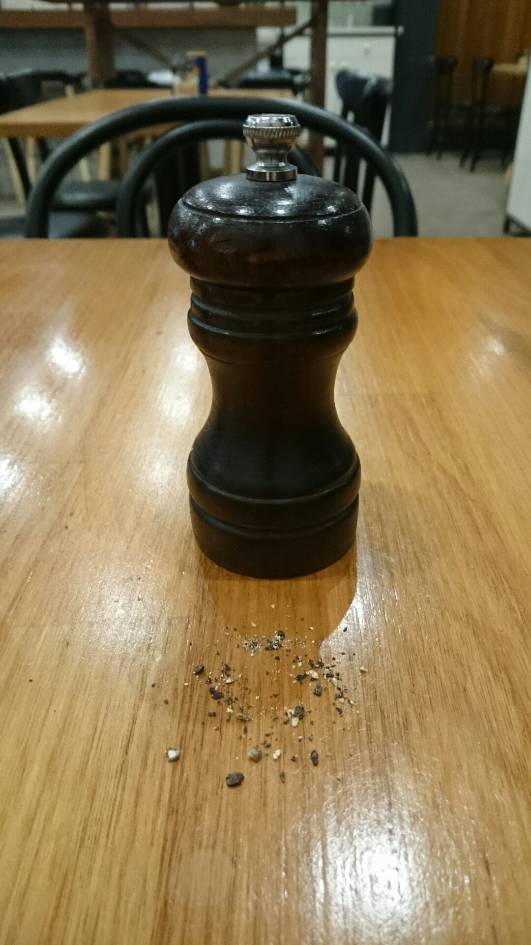 The pepper grinder holds whole pepper granules, that must go through the grinder on the way to the plate of food in order to enhance and add flavour. To put whole pepper granules on your meal would be unpalatable.