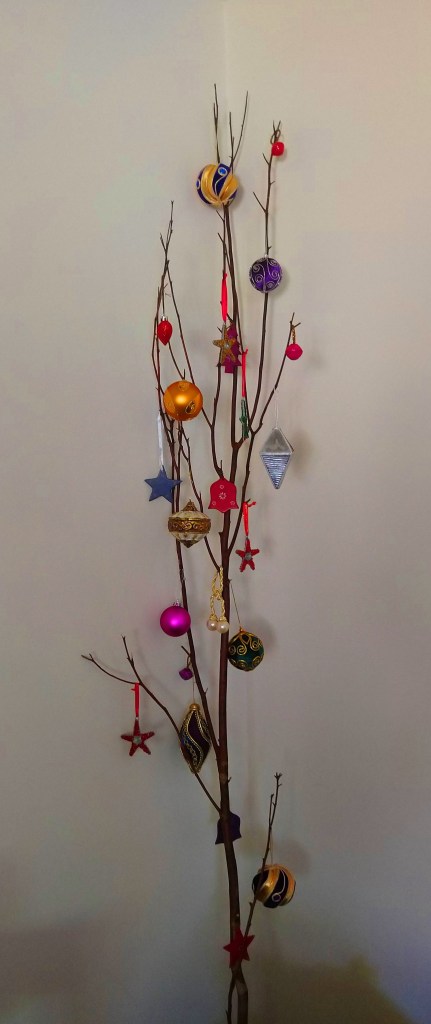 But for a couple of months now, I’ve had the idea that I would like something resembling the symbol of a Christmas tree, but with more of a rustic feel: I like the idea of a tree branch to stand decorated in one corner of my lounge room.
